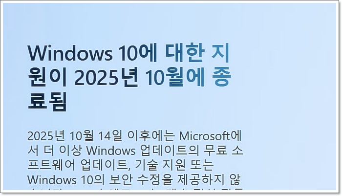 - 이 날짜 이후에는 Microsoft가 윈도우10에 대해 기술 지원, 보안 업데이트, 기능 업데이트 등을 더 이상 제공하지 않습니다.