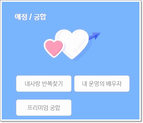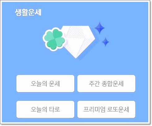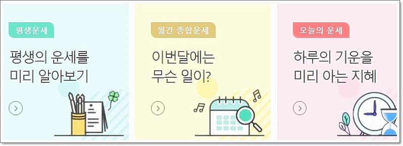 운세 항목: 사주운세, 토정비결, 타로카드 등 다양한 운세 항목을 제공합니다.