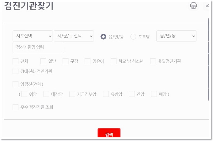 먼저 건강검진 병원조회는 국민건보 사이트에서 조회를 해보실수 있는데요 위의 사이트로 들어 가시어 나의 시도를 선택하신후에 시군구 선택 그리고 읍,면,동 을 선택하여 보시기 바랍니다. 검색을 눌러보시기 바랍니다.