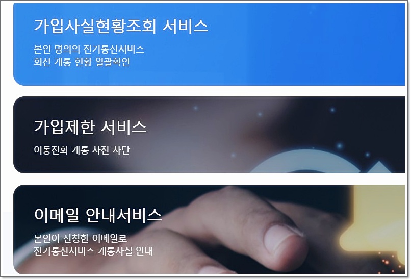 서비스 선택: 원하는 서비스를 선택하여 이용합니다. 예를 들어, 가입사실현황조회나 가입제한 서비스 등을 선택할 수 있습니다.