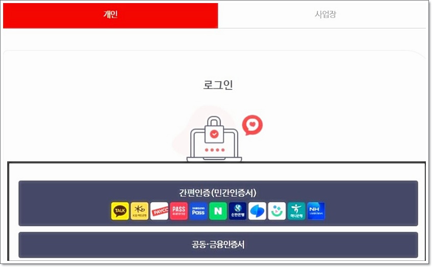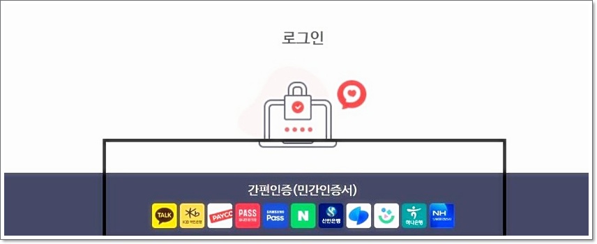 3. 다들 모두 클릭을 하여 주셨으면 모두 로그인 인증을 하셔야지 환급금 조회를 하실수 있으신데요. 여러분들이 가지고 계시는 인증서로 해주셔도 되며 간편인증으로 카카오부터, 국민, 페이코, PASS , 네이버 등 다양하게 있으니 선택하여 로그인 하여 주세요. (PASS를 이용하실 분들은 아래의 파란색바를 참고하여 이용하여 보세요.)