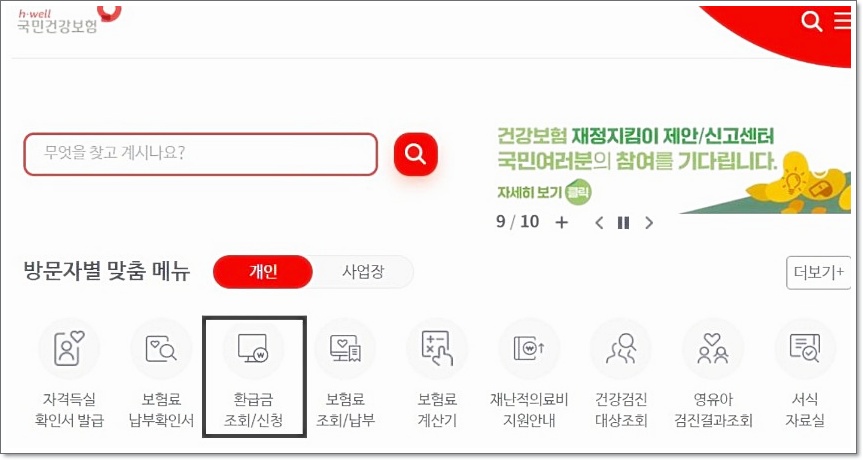 의료비 환급금 조회를 해보시려면 먼저 국민건강보험 홈페이지로 접속을 하셔야 하는데요. 이는 PC버전과 모바일버전으로 나누어 설명을 해드리겠으니 아래의 내용을 보시고 따라하여 보시기 바라며 꼭 환급금 신청하여 보시기 바랍니다.