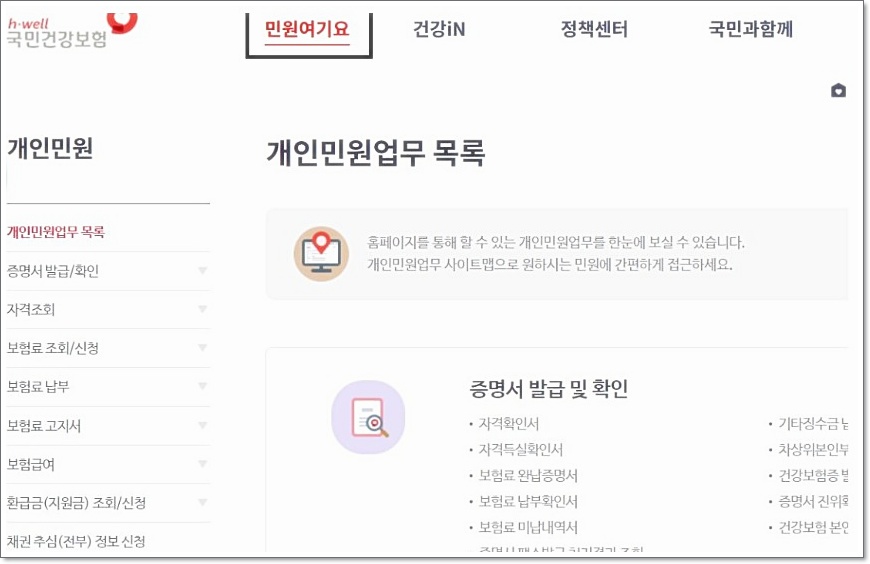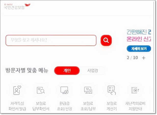 1. 첫번째로 하실것은 국민건강보험 홈페이지에 접속을 하셔야 하는데요. 위의 링크로 들어가시어 접속을 먼저 해주시기 바랍니다. 다들 접속을 해주셨나요?