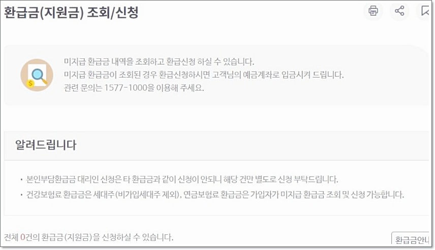 4. 환급 대상자 시라면 간단히 신청하기 버튼을 클릭하신후에 제출해야 하는 서류들을 첨부하여 신청하여 주시면 모두 완료가 됩니다. 매우 간단하죠?