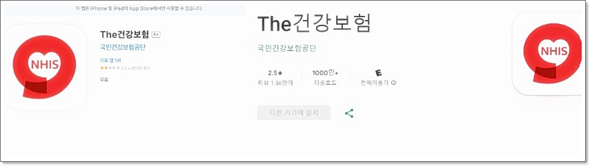 1. 먼저 여러분들이 해당하는 앱플리케이션 중 위의 있는 링크를 통해 건강보험 애플리케이션을 설치합니다. 먼저 설치를 해야 조회를 하실수 있으니 건강보험 앱 설치는 필수입니다.