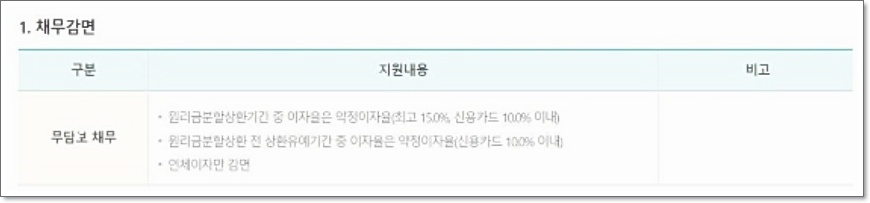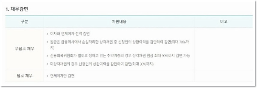 - 부분 면제: 채무자의 상황이 매우 어려운 경우, 일부 채무를 면제받을 수 있습니다.