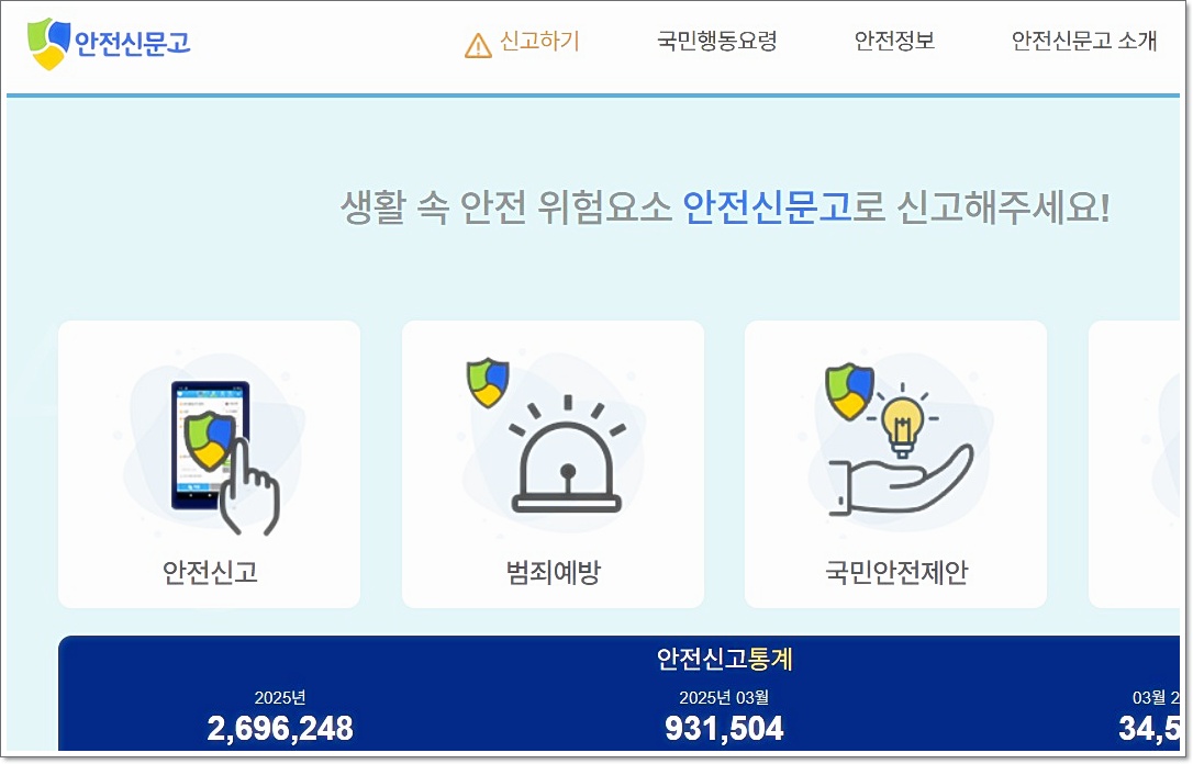 안전신문고 앱 또는 웹사이트 접속: 안전신문고의 공식 웹사이트나 모바일 앱에 접속합니다.