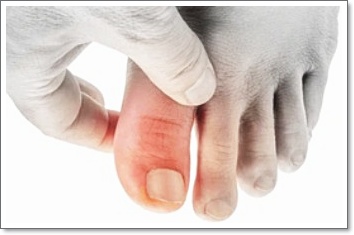 엄지발가락이 안쪽으로 휘어지고, 그로 인해 발목 바깥쪽에 돌출된 부분이 생기는 질환입니다. 이로 인해 엄지발가락에 통증이 발생할 수 있습니다. 주로 신발이 좁거나 높은 힐을 신는 사람에게 많이 나타납니다. - 통풍 (Gout)