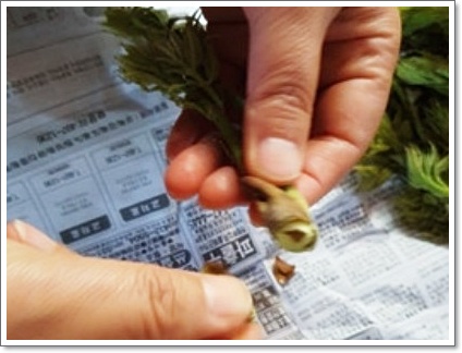 - 물기가 완전히 제거된 두릅을 한 번에 사용할 양씩 나누어 냉동용 비닐백에 넣고 공기를 최대한 빼낸 후 밀봉합니다.