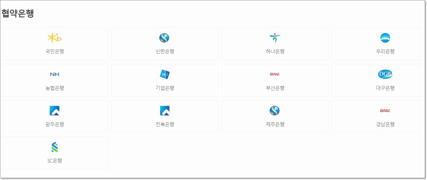 ✅ 국민은행, 우리은행, 신한은행, 하나은행, 농협, 기업은행, 부산은행 등