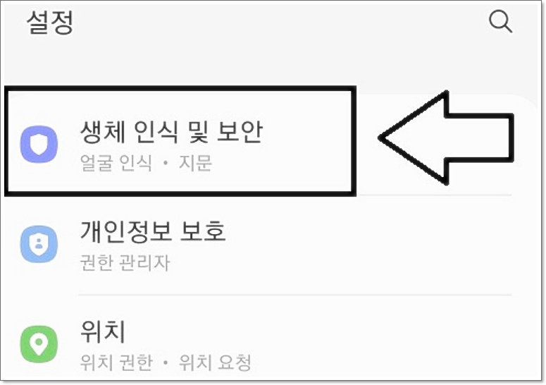 설정 메뉴에 들어오셨다면 여러 항목이 보일 텐데요. 그중에서 ‘생체 인식 및 보안’ 메뉴를 찾아 클릭해 주세요.
