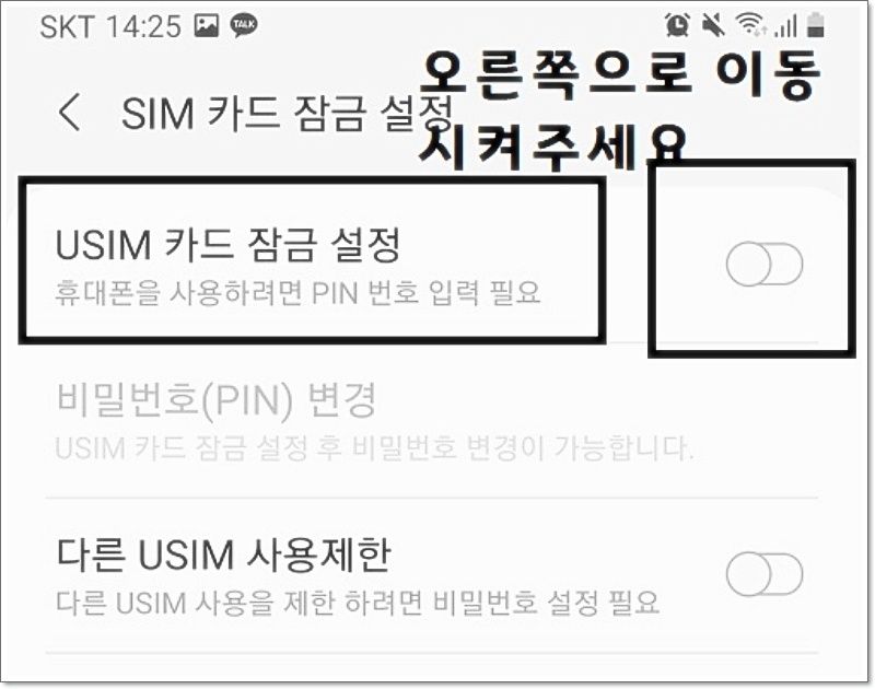 ✅ 5단계: USIM 잠금 설정 켜기