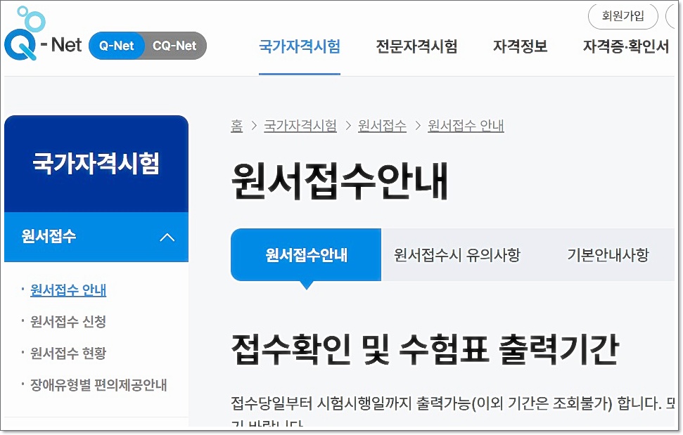 큐넷 원서접수 주의사항