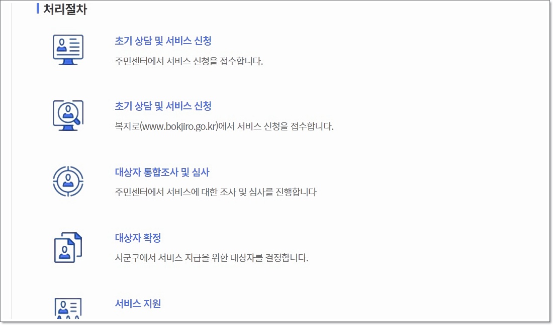 - 자격 요건 확인 및 보장 결정 요청: 읍면동 주민센터에서 자격 요건을 확인하고 보장 결정을 요청합니다.