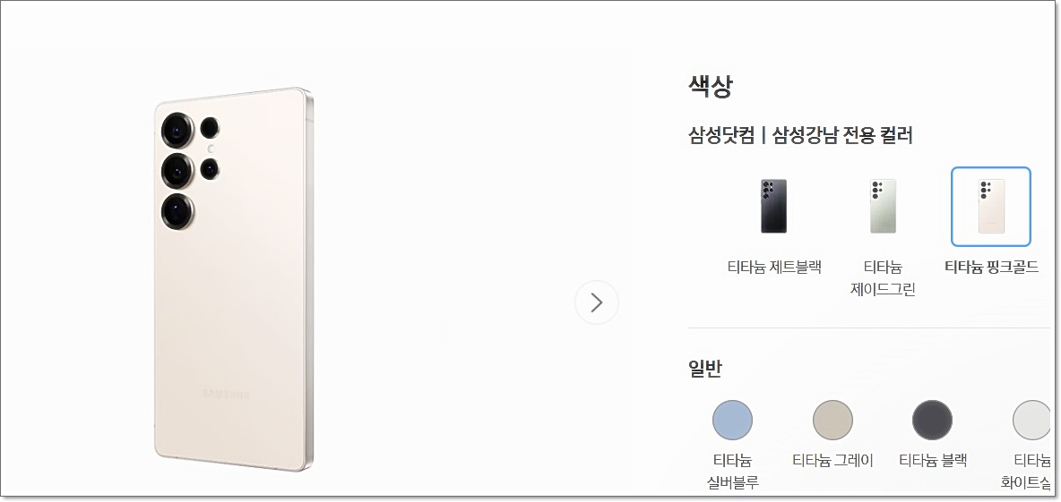 갤럭시 S25 울트라는 다양한 티타늄 색상으로 제공되며, 일부 색상은 삼성 공식 웹사이트에서만 구매할 수 있습니다: