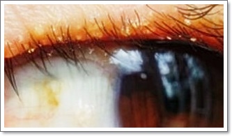 눈꼽이 잘 끼는 이유 일곱번째는 안검염이라고 하는데요. 안검염은 눈꺼풀의 피부부분과 속눈썹의 만성적으로 염증이 생기는 증상입니다. 간단히 설명을 드리면 마이봄선이라는 기름샘과 속눈썹에 염증이 생겨 통증이 유발된다고 하는데요. 안검염이 생기게 되면 눈 주위 붉은 테를 두른듯한 검연 충혈이 보이며 속눈썹이 빠지고 안으로 말려 들어가 눈을 찌르기도 한다고 합니다. 또한, 가려움증, 눈의 이물감, 눈의 자극이 있다고 하는데요. 또한, 궤양성 안검염의 경우에는 농이 형성되어 작은 농포과 궤양을 만들며 눈꼽이 눈썹에 덕지덕지 끼고 속다래끼 등으로 발전될수 있다고 합니다. 그렇기에 위 증상들 자세히 살펴보시기 바랍니다.