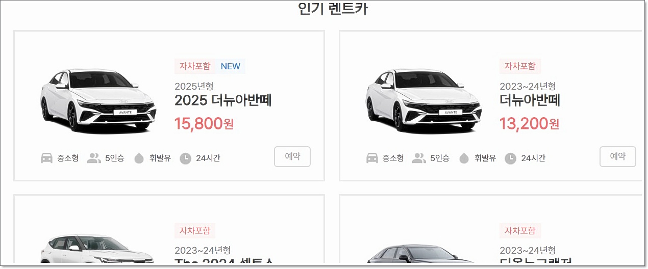 렌트카 리스트 확인 및 비교