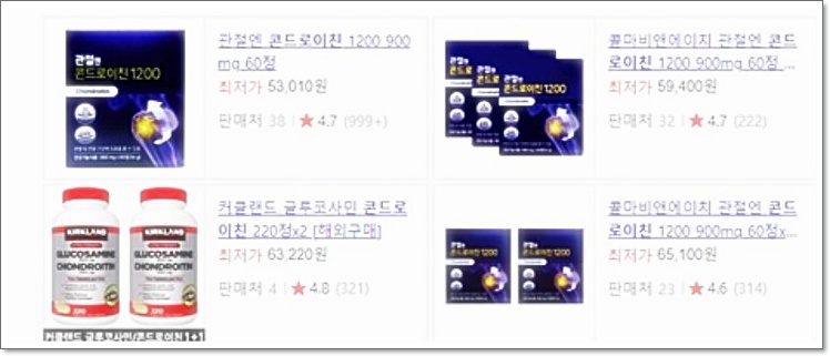 콘드로이친 외에도 관절 및 연골에 좋은 성분들은 매우 다양합니다. 그렇기에 관절에 도움되는 영양제, 성분들을 넣어드리겠으니 같이 읽어보시고 선택시 도움 받아보시기 바라겠습니다. ( 글부분의 효능, 가격 모두 들어있으니 도움받아보세요.)