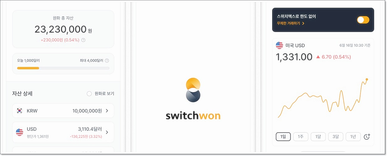 | 스위치원 | 0원 | 하루 4,000USD까지, 오전 9시~15시 이용 가능 |
