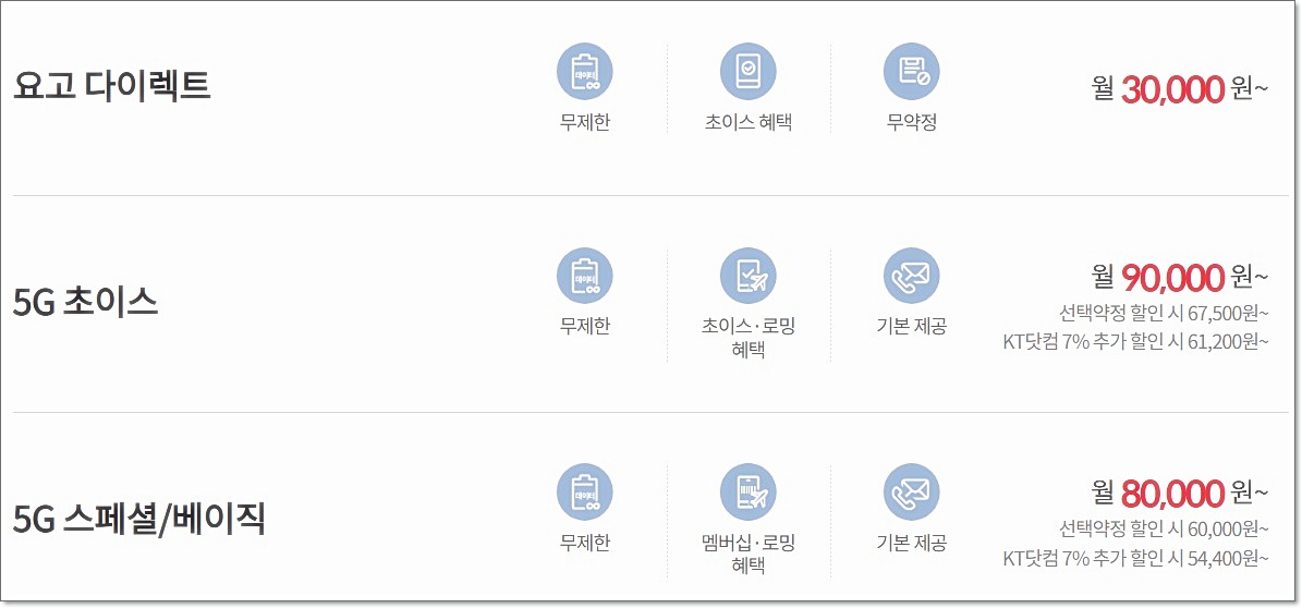 - 예시: 월 4만 원대 이상 요금제: 무제한 데이터, 무제한 음성통화, 문자 무제한, 멤버십 할인, 무료 OTT 서비스 등.