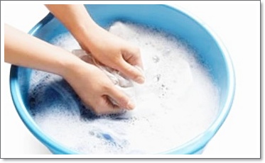 - 누렇게 변색된 옷을 2시간 이상 충분히 담가둡니다.