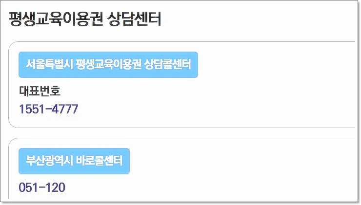 - 수강 전 반드시 기관에 전화 문의: “평생교육이용권 사용 가능 여부” 확인.