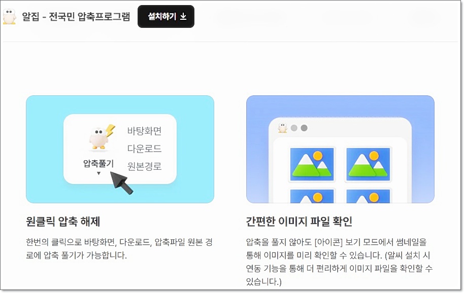 - 7-Zip, 알집, WinRAR: 설치 후 파일 선택 → 여기 풀기 또는 지정 폴더에 풀기