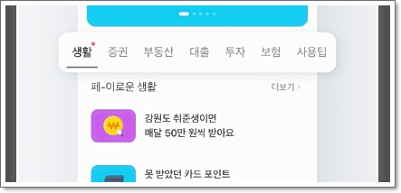- ‘카카오페이’ 아이콘(₩ 모양) 클릭 → 카카오페이 메인으로 이동