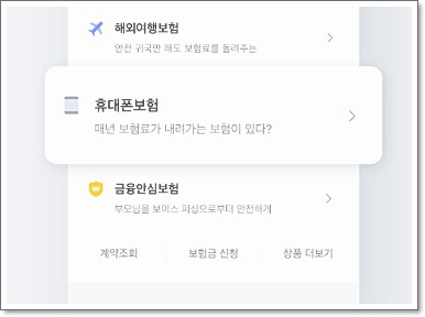 (여행자 보험, 반려동물 보험, 휴대폰 파손 보험 등) - 보험금 청구도 모바일로 가능