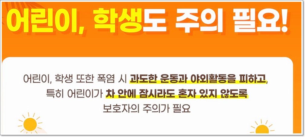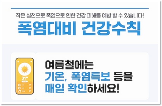 - 부득이하게 외출할 경우에는 그늘을 활용하거나 자주 휴식을 취해야 합니다.