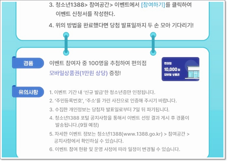 - 발급 후 편의점 상품권 이벤트는 지역 청소년센터 SNS·홈페이지 확인 필수!