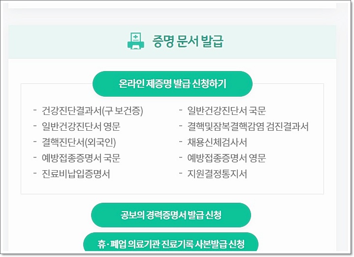 - 예: 질병관리청 건강진단결과서 발급