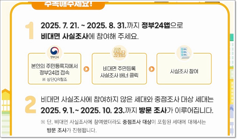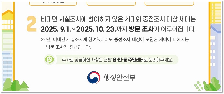 - 세대주와 구성원 정보가 정확해야 하며, 잘못 기재 시 조사 지연 또는 불일치 발생 가능